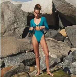 New Free People Stone Fox Ulu Surf One-Piece $220 SMALL Verdigris BLUE/GREEN