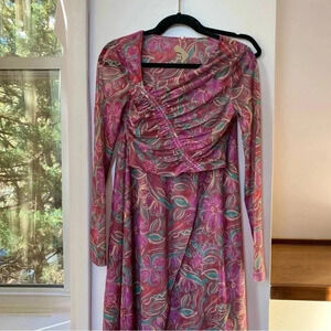 New Free People Supernova Set Two Piece Skirt Crop Top Long Sleeve Purple Small