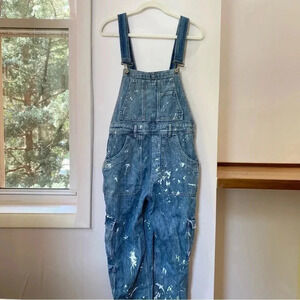 New Free People Sutton Utility Overalls Denim Jumpsuit Paint Splatter Bib One Piece