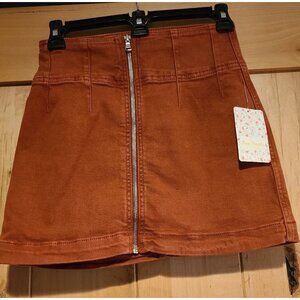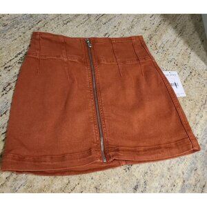 New! Free People Virgo Mini Skirt 24 A-Line Zip Front Rust Primrose Orange Fall