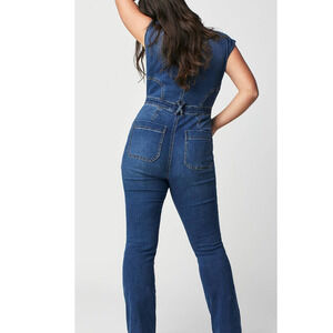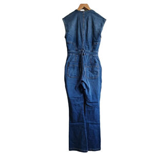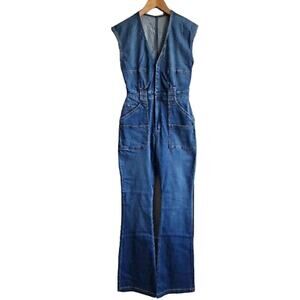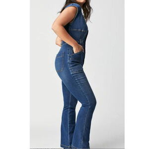 New Free People WTF CRVY Hyde Park Stretch Denim Jumpsuit $158 SIZE 6 Blue
