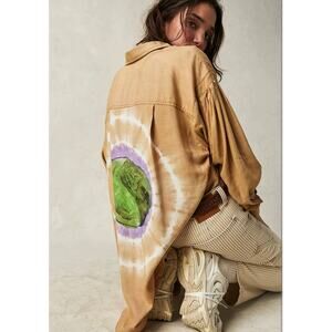 New Free People WTF Yin Yang Tie Dye Graphic Buttondown $198 SMALL Boho