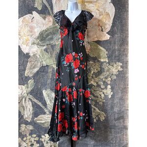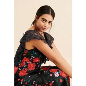 New Free People Warm Hearts Floral Lace Neckline Asymmetrical Midi Dress Large