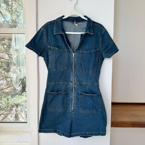 New Free People We The Free CRVY Lennox Shortsuit Denim Jumpsuit Blue