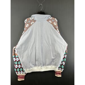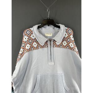 So bold from our We The Free collection, this slouchy pullover features a soft cotton fabrication and classic collar with contrast floral piecing and a half-zip closure.