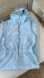 Light blue hooded one-piece jumpsuit "go onesie" from FP Movement in soft cotton-blend fleece with a relaxed wide-leg fit, zip front, and elastic waist. (waist: 13.5 in, inseam: 27.25 in).