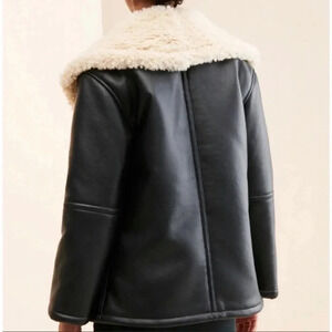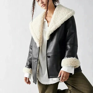 New Free People Winnie Vegan Leather Car Coat Oversized Black Beige We The Free