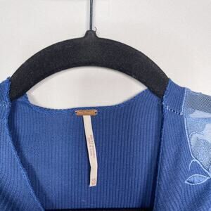 New Free People XS Blue Daniella Lace Top Long Sleeve Ribbed Swingy Side Split