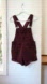 Free People Ziggy shortalls in red/black denim, size XS — relaxed slouchy fit with adjustable straps, frayed cuffs, back pockets, and 100% cotton/