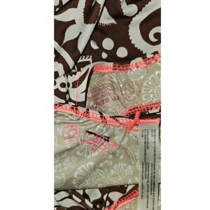 Features: Recycled fibers, printed detail allover, higher neckline, low-cut sides with adjustable ties, flattering high-cut legs, low open back, fixed shoulder straps