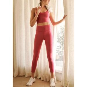 New. Free People wild raspberry leggings. Red and pink hues are softly blended together on second-skin leggings that will keep you confident and comfortable while at the gym.