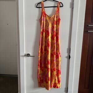New Free People x Intimately Floral Maxi Dress Pink High Slit Sleeveless Sz L