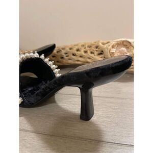 eatures: Slip-on style, backless design, square toe detail, chunky pearl embellishment, kitten heel, lined footbed
