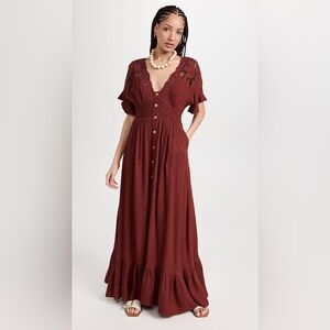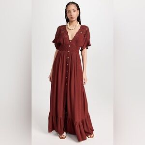 New! Free People x Revolve Colette Embroidered Eyelet Maxi Dress Cinnamon🥀 Small