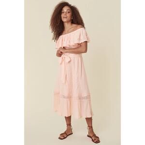 New Free People x Spell Cassie Off The Shoulder Lace Gown $299 X-SMALL Pink