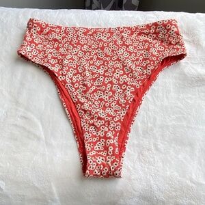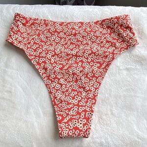 stand out in these rich tomato red ditsy floral high cut bottoms! A super flattering shape and cute print, you can't go wrong with this Mallory High Cut Bikini Bottom. Made from a blended fabric.