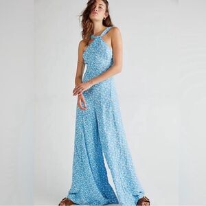 New Free People Arlo Jumpsuit Women's Size XS Blue Floral - Ice Combo