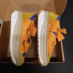 New Free People Chapmin Espadrille Ribbon Bow Sneakers 39 Blue Combo