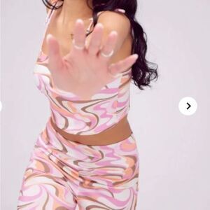 Part of an exclusive collaboration between FP Movement and Onzie, this so-fun patterned set features a cropped tank with matching bell-bottoms.