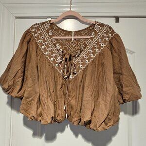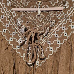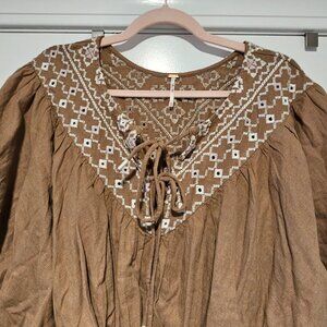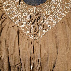 New Free People✨Joni Embroidered Top - Tan NWOT size XL MSRP $148