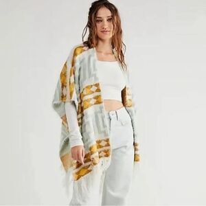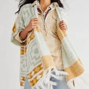 New Free People Poncho Diamondback Cozy Sweater Kimono in Ivory One Size sha…