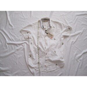 New Free Planet Button Hawaiian Hula Dance Girl Short Sleeve Shirt Sz S (MT25)