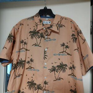 New Free Planet Orange Sand Palm Trees Short Sleeve Button Down Men's 3X