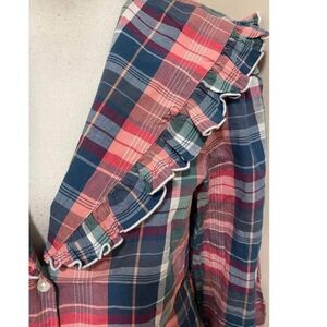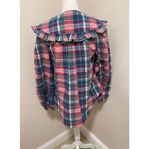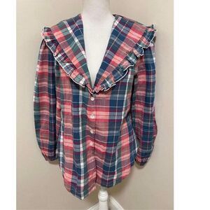 Just as versatile as it is vintage-inspired, this perfectly printed top is featured in a stunning plaid print with ruffle-trimmed collar, slightly puffed sleeves, and button-front closure for added ways to wear.