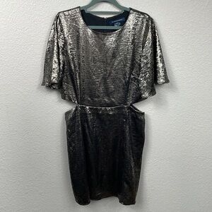 New French Connection Alara Metallic Flutter Sleeve Cutout Mini Dress Sz 10