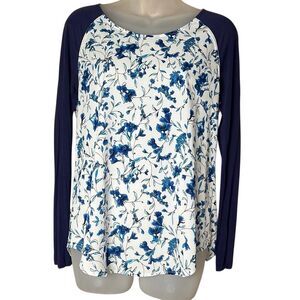 New French Connection Blue Floral Raglan Sleeve Blouse Size Small (315)