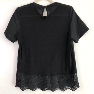 New French Connection Embroidered Eyelet Hem Short Sleeve Tee Black Size XS