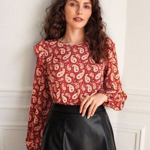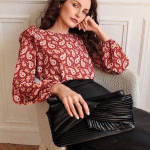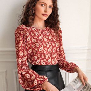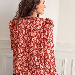 New Frenchy Paisley Print Ruffle Trim Blouse Red