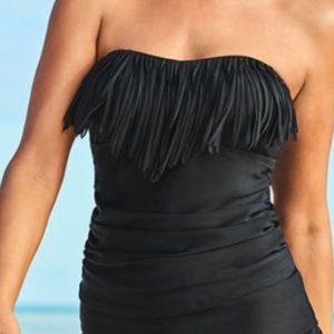 New Fringe Bandeau Tankini TOP Swimsuits For All Black Plus Size 16