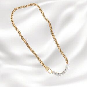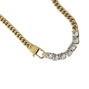 Beautiful 18" Gold Plated Cuban chain with a row of 7 Round CZs, lock clasp. This is a private label created for Boutique . This is not Melinda Maria.