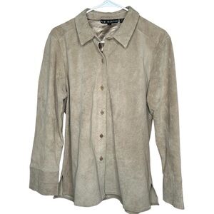 New Frontier Shacket Womens L Light Tan Suede Snap Front Shirt Jacket