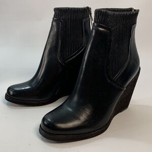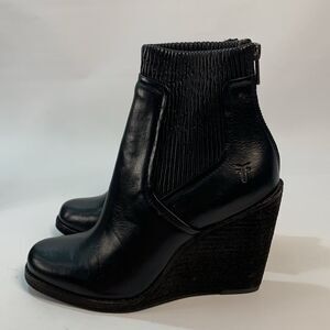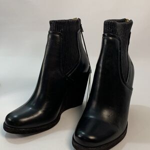 New Frye Carrie scrunch back zip black Leather Wedge Ankle Boots size 7