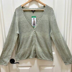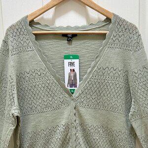 New Frye Women's Soft Cotton Pointelle Cardigan Sweater Size XL Seagrass Boho