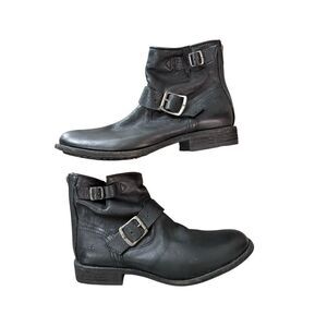 New Frye Womens Black Tyler Engineer Leather Ankle Boots Size 8.5