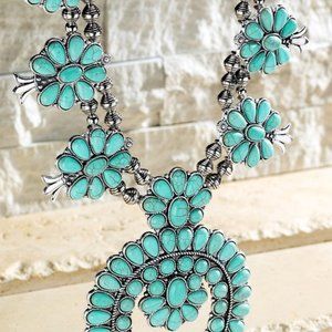 Beautiful southwestern inspired natural stone squash blossom statement necklace.