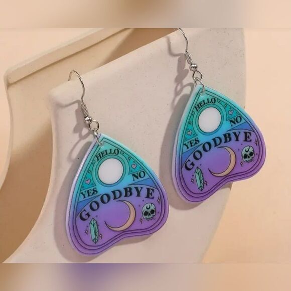 New Fun Dangle Ouija Planchet Halloween Earrings Blue and Lavender