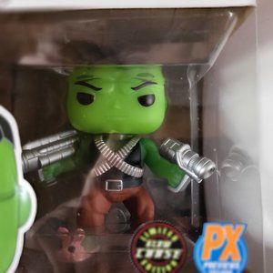 Professor Hulk by Pop! Marvel. Hulk is a LIMITED GLOW CHASE and PX PREVIEWS EXCLUSIVE. He is a bobble-head with weapons and pink bunny slippers. Great gift for any Funko Pop collector or a Hulk lover. See pictures for details. Message with any questions.