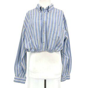 New Furst of A Kind Blouse Womens One Size Cropped Blue Striped Top Long Sleeve