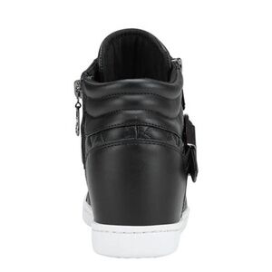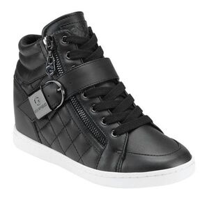 Flaunting a high-top silhouette, these sneakers from G by GUESS are accented with quilted details, a padded collar, triple closure options, and a contrast sole.