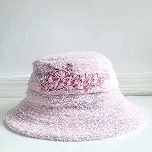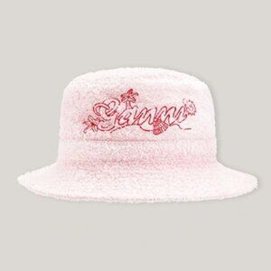 New GANNI Logo Embroidered Terrycloth Bucket Beach Hat Mary's Rose NWT Size XS/S