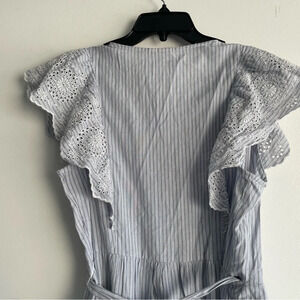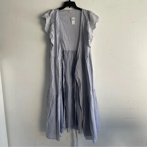 GAP Blue White Striped Flutter Sleeve Midi Wrap Dress Size Large