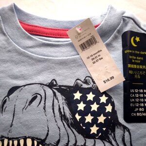 New GAP Dinosaur Patriot Glow in Dark Light Blue Tee USA Flag Boys Toddler 12-18