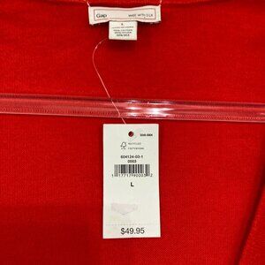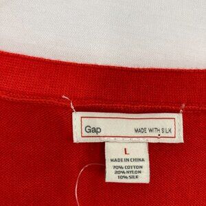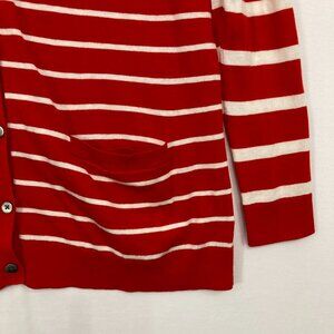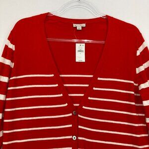 New GAP Large Silk Blend Red White Striped Ultra Soft Button Cardigan Preppy