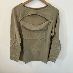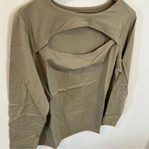 New G.I.L.I. Long Sleeve Open Keyhole Top in Olive | Size XL