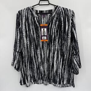 New GLORIA VANDERBILT Womens 3/4 Sleeve Shirt Size XXL Crochet V-Neck Loose Top