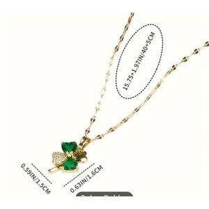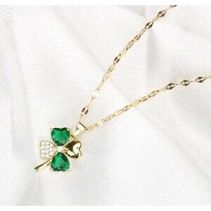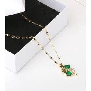 New GOLD & GREEN 4 Leaf Clover SHAMROCK Crystal Necklace